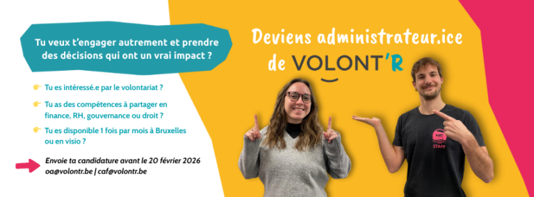 Tu es intéressé·e par le volontariat et les projets citoyens ? Tu as des compétences à partager ? Tu as du temps libre ? Rejoins notre asbl et engage-toi bénévolement au sein de notre conseil d’administration !
